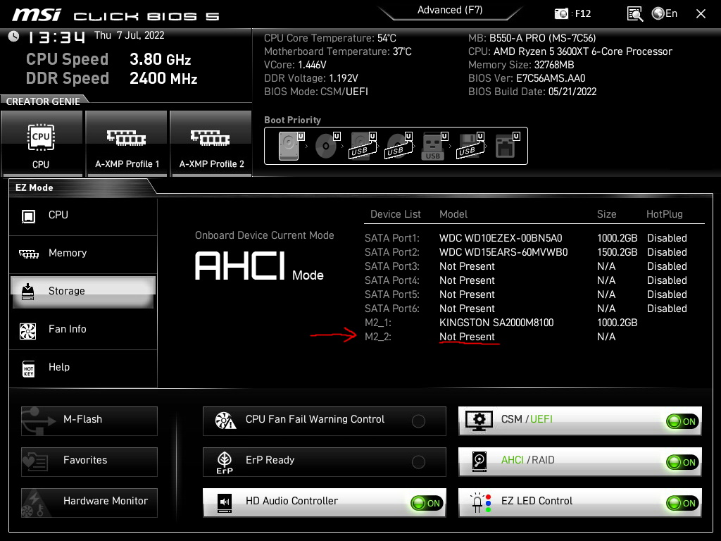 Das BIOS ist aktuell und ich sehe keine Einstellmöglichkeit um M2_2 zu aktivieren.