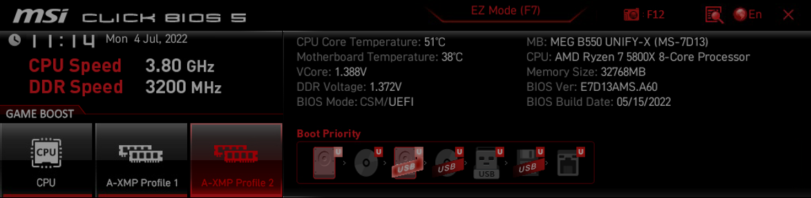 - Mainboard: MSI B550-A Pro AMD B550 So.AM4