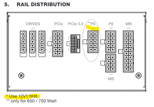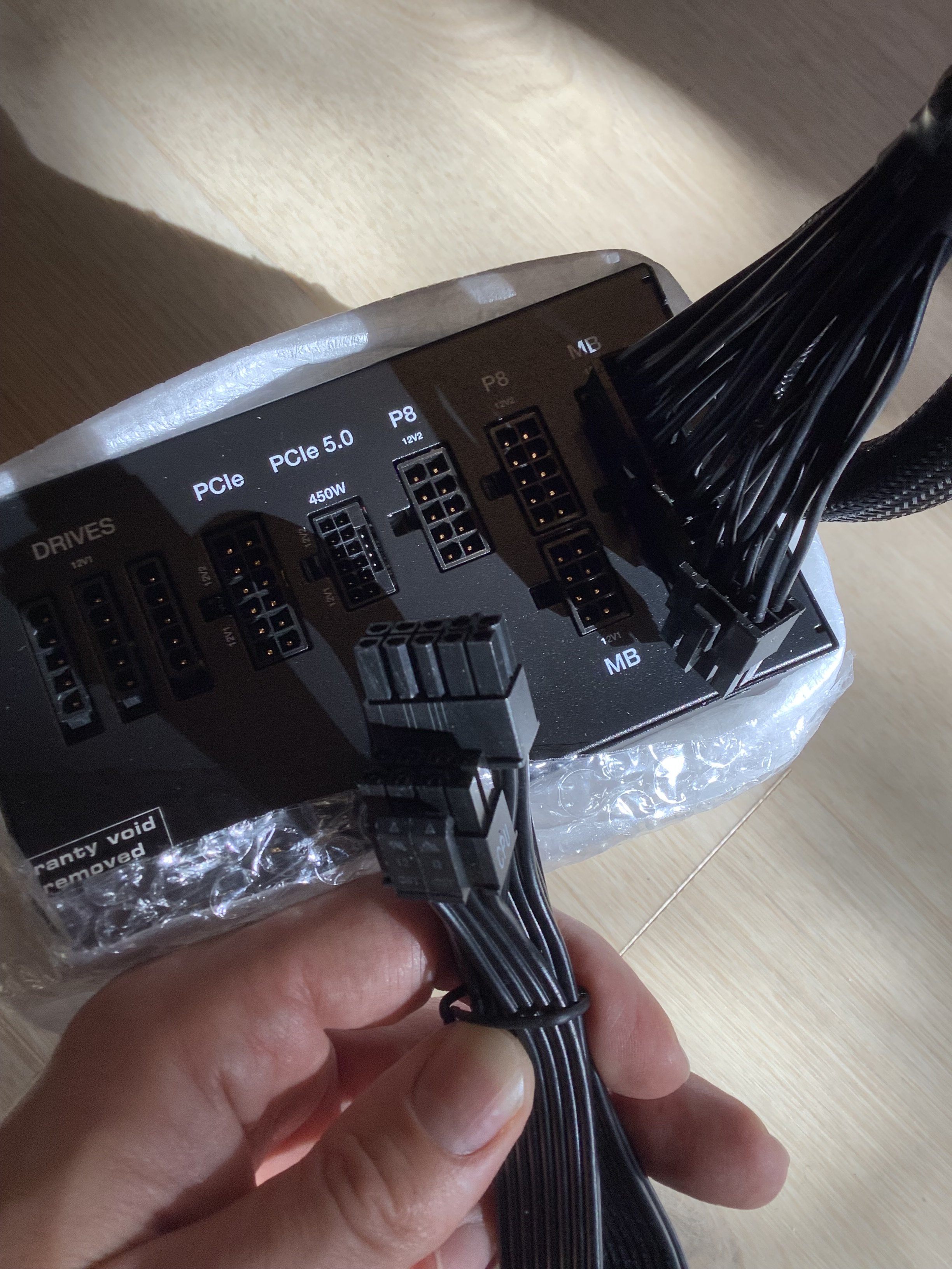 Das NT hat an einem Strang beides zusammen am Ausgang, wobei am Ende beim Board aber nur der 24 Pin Anschluss rauskommt. Dazu dann noch einmal separat ein 8 Pin Kabel (siehe Foto).