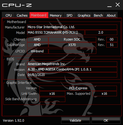 ich habe einen Ryzen 7 7300X mit einem MSI B550 Tomahawk. Doch im CPU-Z steht X570 Southbridge.