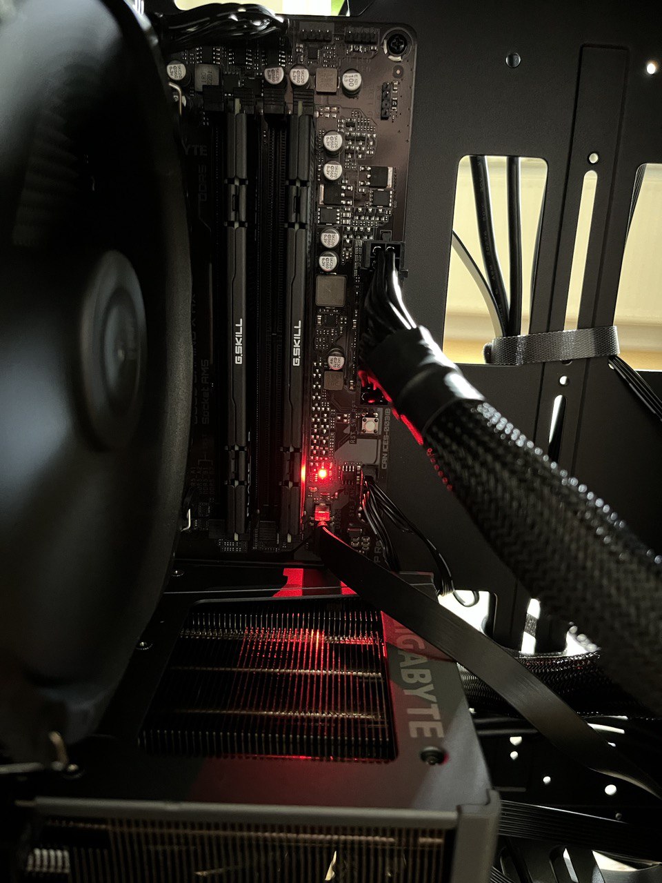 Nun habe ich die Karte heute eingebaut und ich habe wieder direkt eine rote VGA Led. Ich habe die Karte fest in den PCIe Slot gesteckt und den PCIe Stromanschluss angesteckt. Dann den Rechner gestartet und zack war die Leuchte an.
