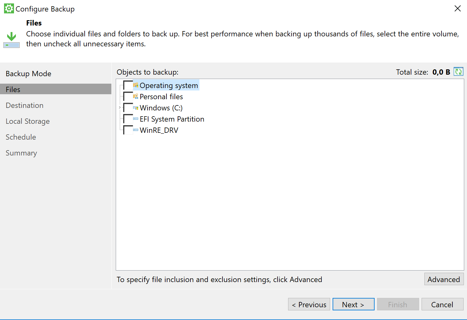 Ich habe mich für File Level Backup entschieden, dabei habe ich aber nur die Möglichkeiten: