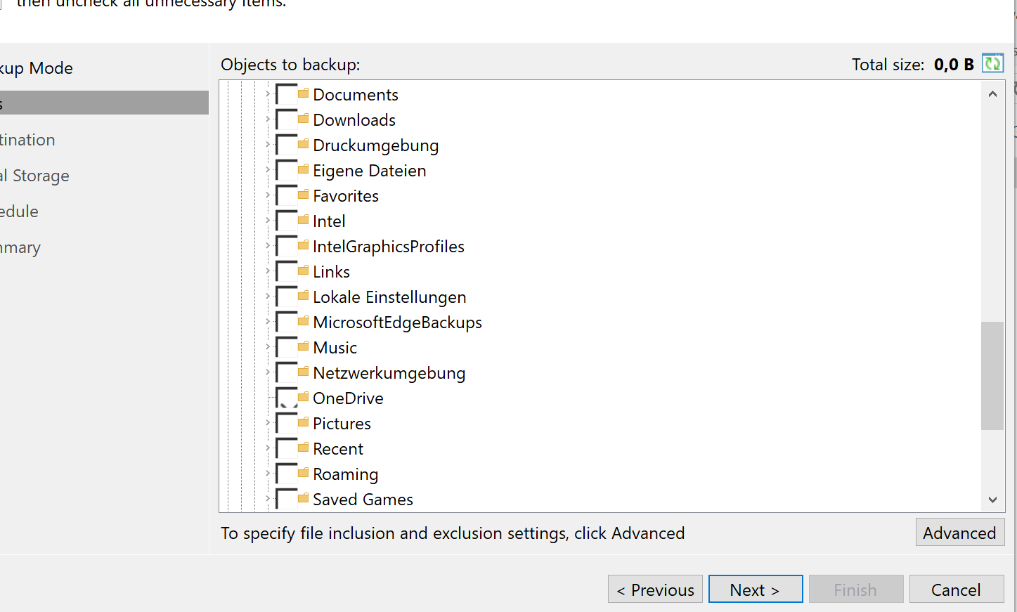 Jetzt stecke ich schon bei den ersten Schritten fest, ich will Veeam konfigurieren, möchte ausschließlich den OneDrive Ordner backupen (35 GB), der erscheint aber erst gar nicht in den Auswahlmöglichkeiten