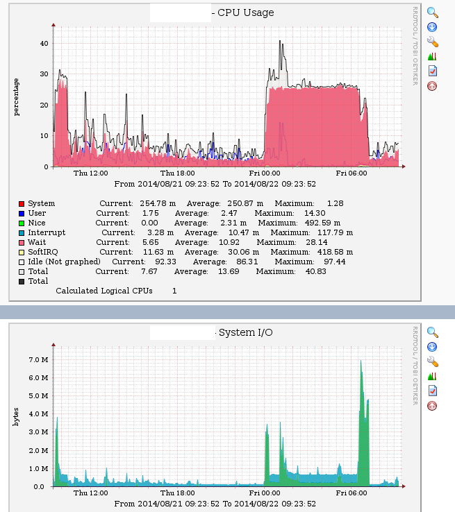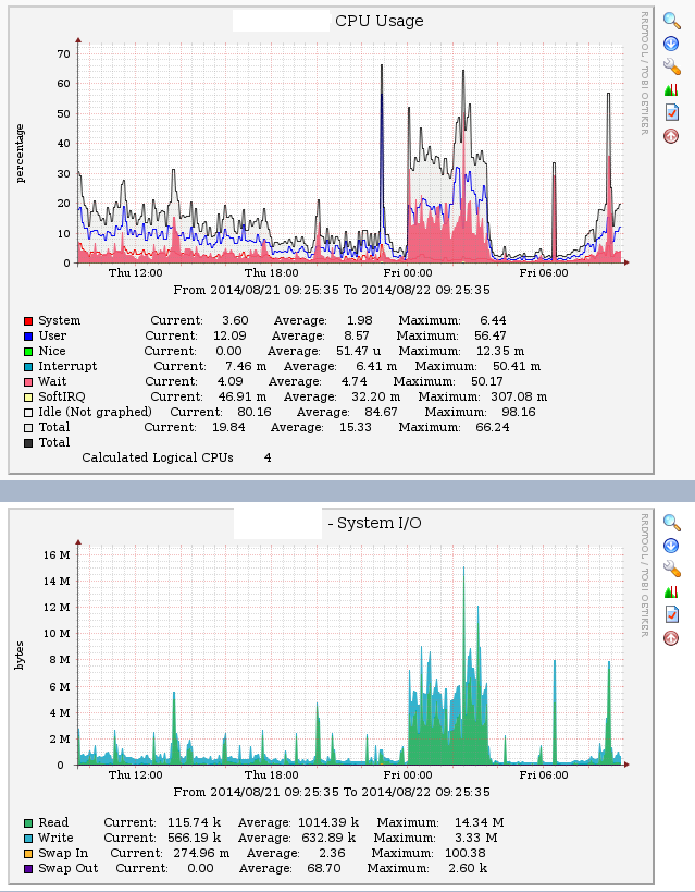 Als erstes, bitte seht euch folgende zwei Diagramme im Anhang an, das erste zeigt den schnellen Backup Server und das zweite den langsamen. (Langsamer Host hat 4 Core's nicht 2)