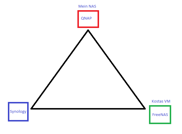 2.) Bei meinem anderen Bruder (Chris) soll demnächst eine Synology angeschaft werden auf dem ich dann auch resilio installieren möchte und er soll beide Quellen synchronisieren (QNAP (von mir) & FreeNAS(von kosta)).