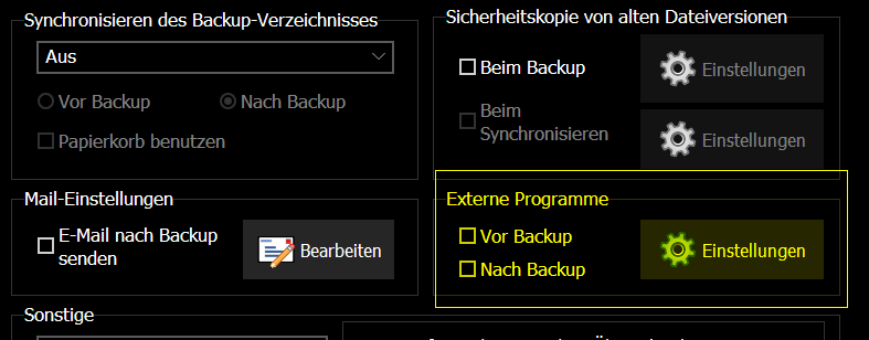 Zeitsteuerung geht nicht, da die zu sichernden Daten auf einem VeraCrypt-Laufwerk liegen, welches ich nur bei Bedarf mounte.