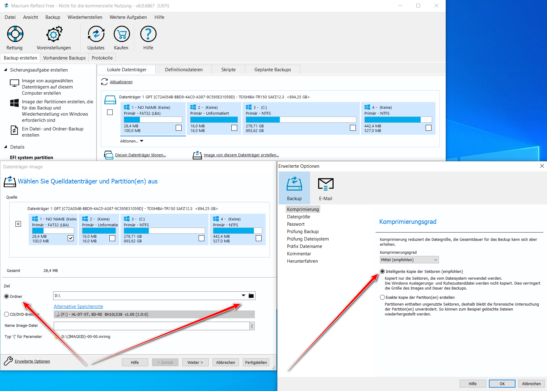 Externe HDD mit Truecrypt Vollverschlüsselt wo alle Backups vom Laptop (mit Macrium Reflect gemacht) liegen. Es handelt sich hier um komprimierte Backup Images die weniger Speicherplatz belegen.
