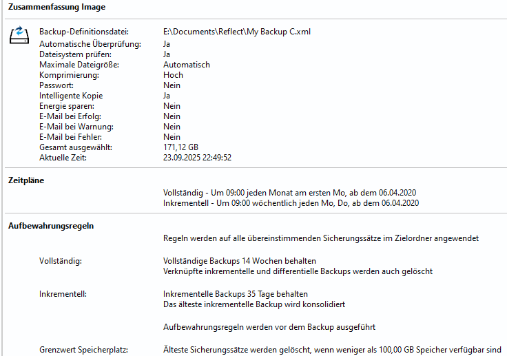 Ich weiß, die Ordner könnte ich da natürlich auch mit rein packen aber das will ich nicht, weil dort auch unnützes Zeug liegt, das nicht wirklich gesichert werden muss. Ich selektiere dann einfach und zieh das manuell rüber.