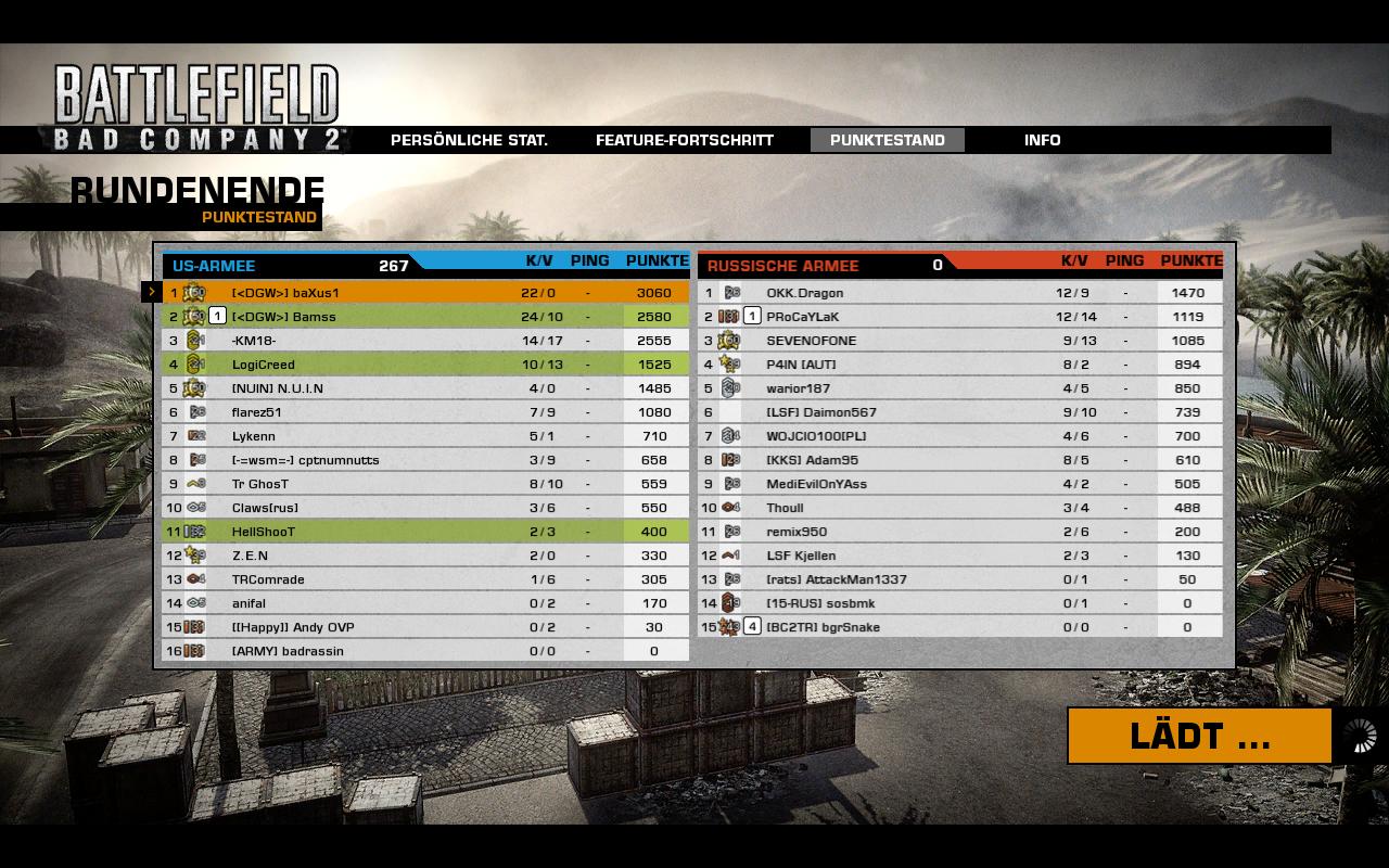 Ich habe heute die längste BFBC2-Runde meines Lebens gespielt, 2.000-Ticket-Server, Atacama Desert. Eingestiegen bin ich bei rund 1.450 Tickets auf beiden Seiten. Beide Teams waren nicht sonderlich gut und der Server hat auch ziemlich heftig gelaggt. Ich blieb trotzdem dort und habe ungefähr 2,5 Stunden gespielt. Ich war bester Spieler, hatte eine positive K/D-Rate, hab Pins am Fließband eingesackt und deutlich über 10.000 Punkte für mich verbuchen können. Als das gegnerische Team nur noch 10 Tickets übrig hatte und der Sieg zum Greifen nah war, kackte mir das Spiel ab. Kein Screenshot fürs Forum und kein Endergebnis für mich, um zu wissen, wie ich gespielt habe. Ihr könnt euch vorstellen, wie ich mich fühle.