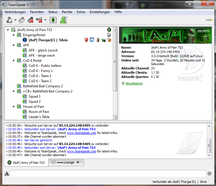 Willi meinte dieses kleine lustige Logo hinter dem Namen, was ich nutze, um die CB User kenntlich zu machen. Das war noch eine der einfacheren Sachen beim Einrichten des TS3.