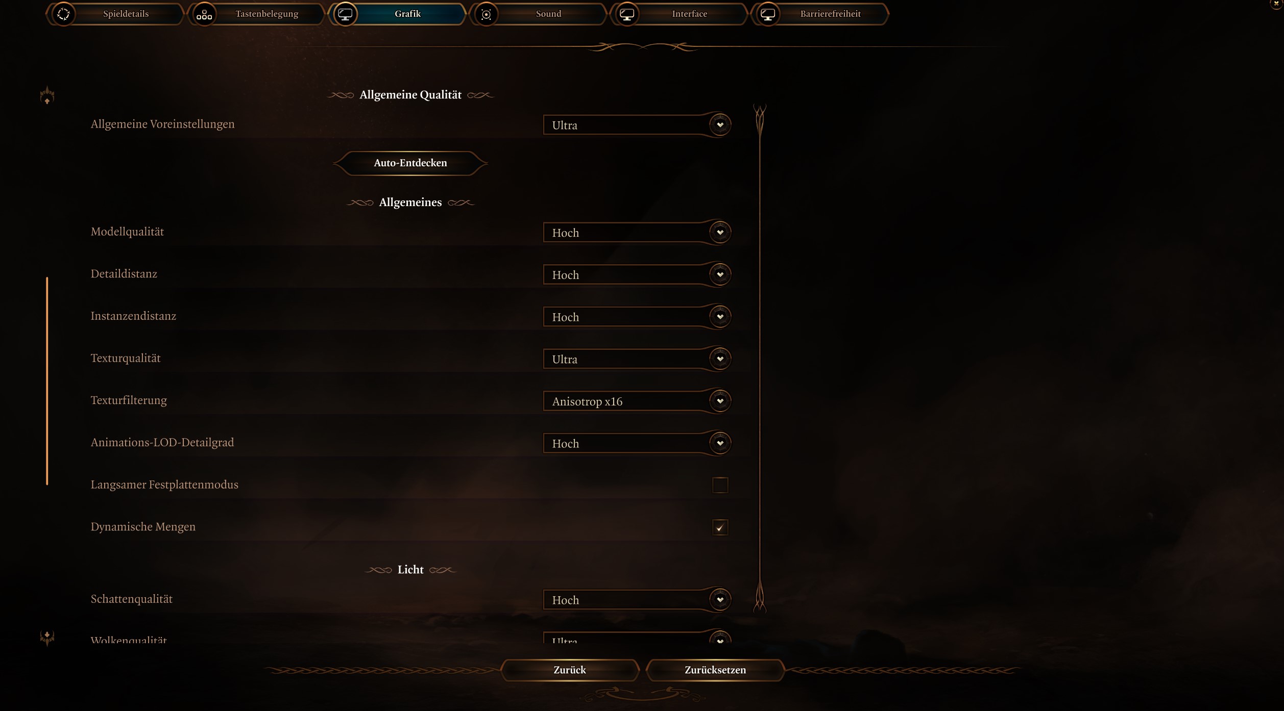 FSR aus. Settings siehe Bilder. Läuft ohne Sprünge unter DX11 für mich. Alles schön flüssig und keine Probleme.