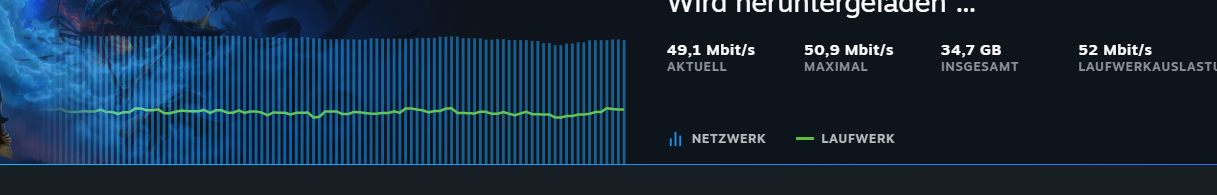 also ich lade gerade mit ca 45-49 Mbit mit meiner 50er Leitung