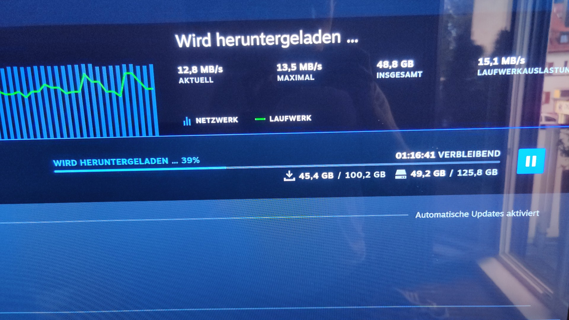 Die Glasfaser liegt schon, aber noch muss ich mit DSL laden... oh man, vier Stunden. Und dabei nicht mal PoE zocken können, weil die Leitung das zeitgleich nicht her gibt.