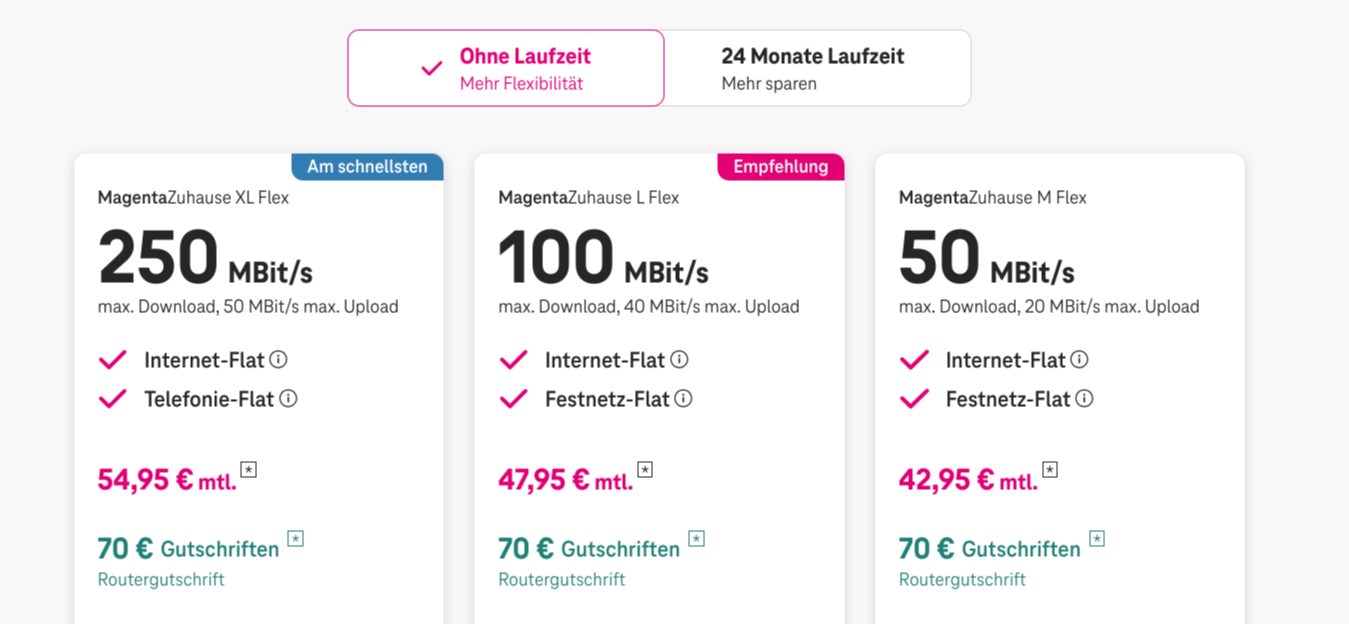 mein Vertrag ist nun nach 24 Monaten "ausgelaufen", d.h. ich kann monatlich kündigen bzw. so weiter laufen lassen. Ich würde allerdings gerne von 100mbit auf 250mbit umstellen, weiterhin mit der monatlichen Kündigungsfrist. Im Kundencenter sagt mir das System, dass das nicht möglich sei.