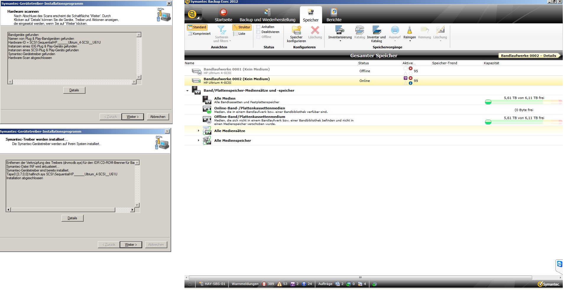 Habe euch einen Screenshot von tapeinstal.exe und aus Backup Exec "Speicher" angehängt.