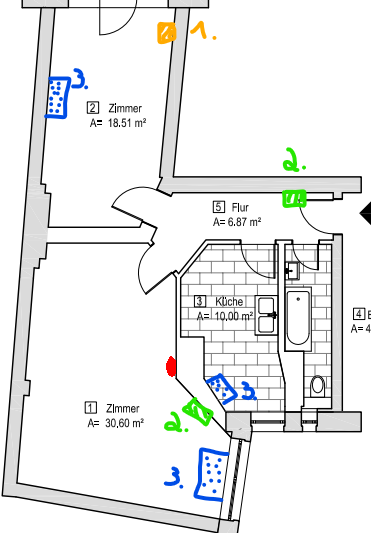 Etwas voreilig habe ich mir gestern einen FritzRepeater310 besorgt und den in dem "schwächeren" Raum (meist so 0,1-2MB/s Down) aktiviert, was keine dauerhafte Verbesserung herbeigeführt hat (habe hier schon gelesen, das viele hier keine Fans von Repeatern sind). Grundsätzlich ist mein Hauptproblem, dass die Internetverfügbarkeit enorm schwankt, von einem Moment mit voller Bandbreite bis zu 60sec komplett offline (beim gaming zum Haare raufen, bei Videokonferenzen unheimlich nervig). Der Ausschlag des Routers/des Repeaters ist dabei immer konstant, es ist also kein Signalverlust zu diesen Geräten.