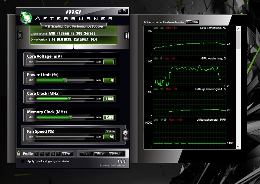 Bitte noma einen Screenshot vom MSI Afterburner kurz nach dem Zocken (5 Minuten Sensorenlaufzeit).