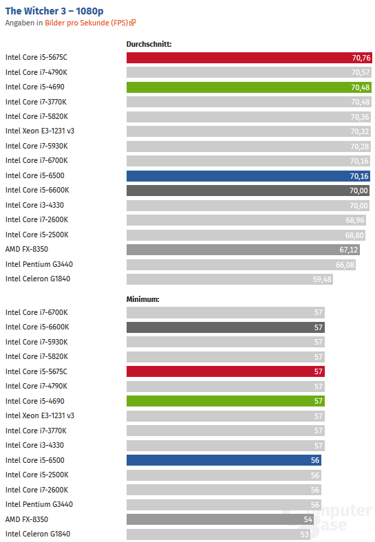 2. Benchmarks zur Untersuchung bei Skalierung über CPU (Min Frames) und Nvidia vs AMD gibt (bei ~gleich starken Karten wie hier die R9 390 und GTX970)