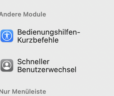 Über die Suchfunktion in den Systemeinstellungen find ich diese allerdings, aber selbst wenn ich was auswähle ändert sich nichts im Kontrollzentrum.