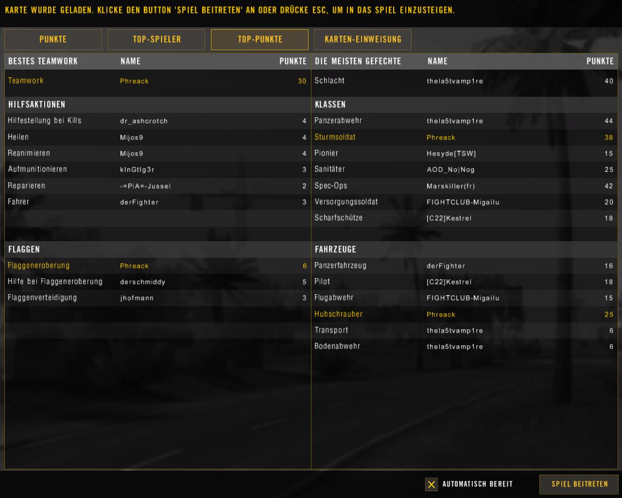 aber dafür hatte ich bei Teamwork 30 und nur 5 oder 7 Deaths