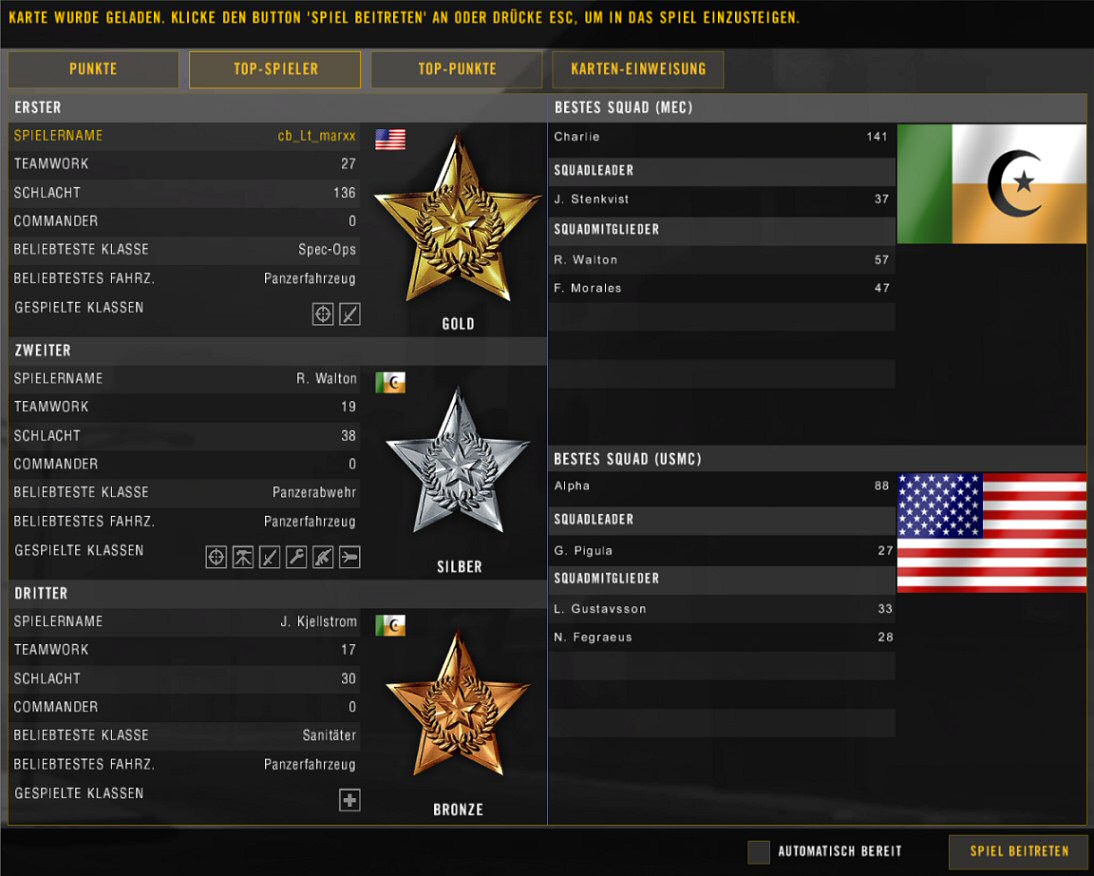 Ich finde das Game auch richtig Geil, ein paar Bugs hat es noch, wie die langsame Serverliste, das Teamkill wenn jemand aus dem Heli springt und die dynamischen Schatten werden bei manchen nicht richtig dargestellt.Aber das neue System der Punkteverteilung finde ich Klasse!