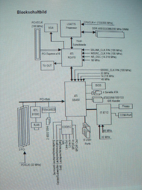 HMM, auf dem Board steht: GA-8TRC410MF-FS-02. Win neu aufspielen wird nicht viel Sinn haben , da ich eine Recovery CD habe, die dann wohl wieder den alten ATI Dreck installiert. Kann es sein das es mit diesem Rechner einfach nicht geht, wenn ich mir das Blockschaltbild ansehe, dann läuft es vom PCi E ANschluss immer über diesen ATI Chip.