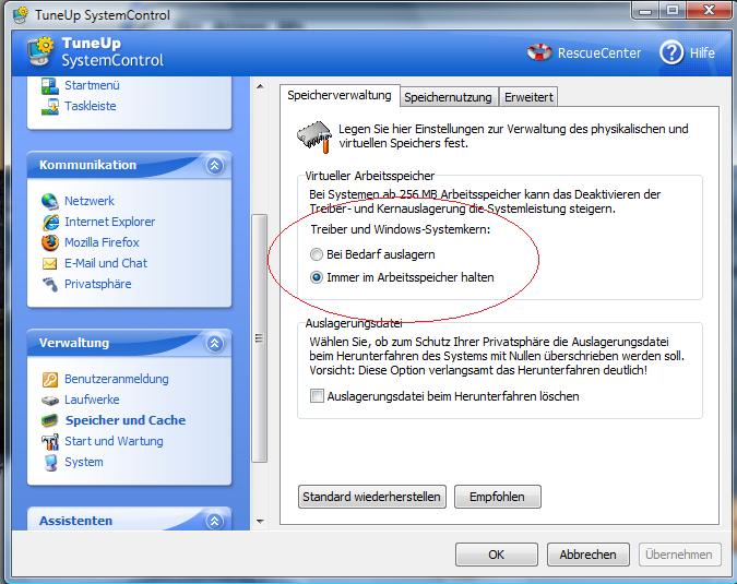 An der Einstellung auf dem Screenshot liegt es mit Sicherheit nicht. Anders herum wäre es höchstens logisch, wenn Vista die Dateien aus dem Arbeitsspeicher auslagern würde und das Spiel dann ruckeln würde. Du kannst die Einstellung ja mal probeweise verändern, aber ich glaube nicht dass das hilft.
