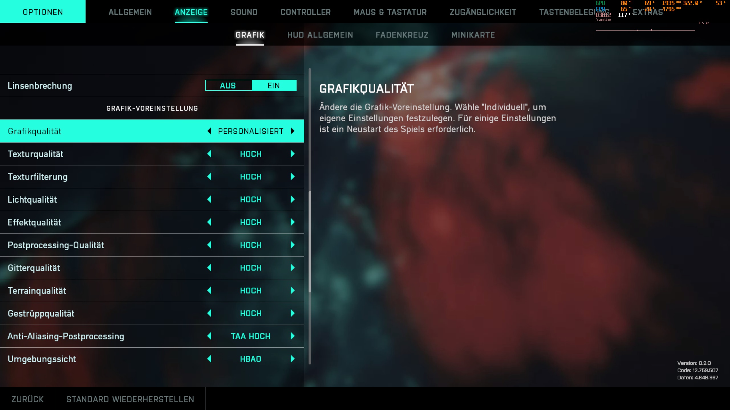 Gitter-, Terrain-, Licht- und Effektqualität können helfen.