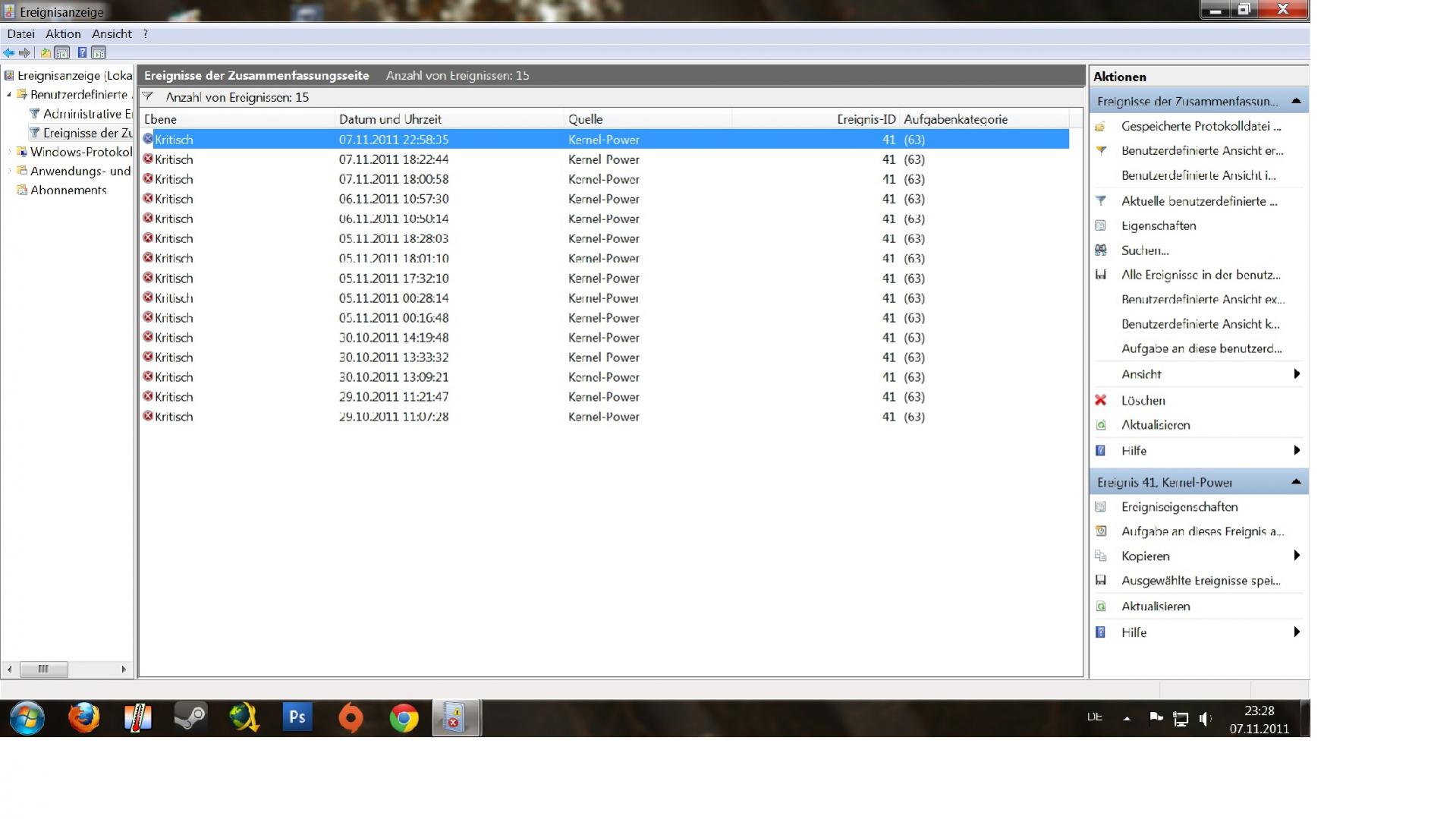 Das zeigt mir das Ereignissprotokoll an....seit dem Spielkauf bis jetzt....immer der selbe Fehler, aber was heist das??? Kernel Power???
