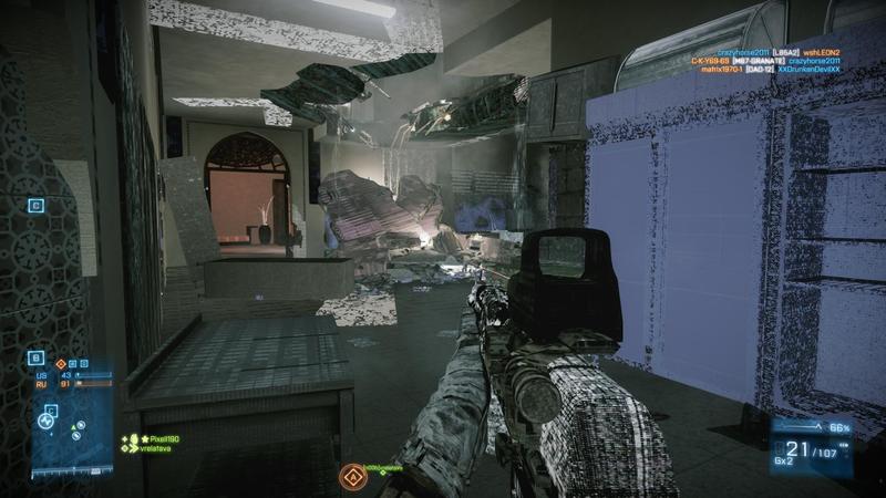 Ich habe seit ein paar Wochen enorme Texturfehler bei Battlefield 3. Sie kommen ganz plötzlich und breiten sich wie ein Virus aus. Erst ist z.B nur das Modell der Hände voll seltsamer Texturen, dann die ganze Waffe und nach spätestens einer Minute das ganze Spiel. (Siehe Bilder)