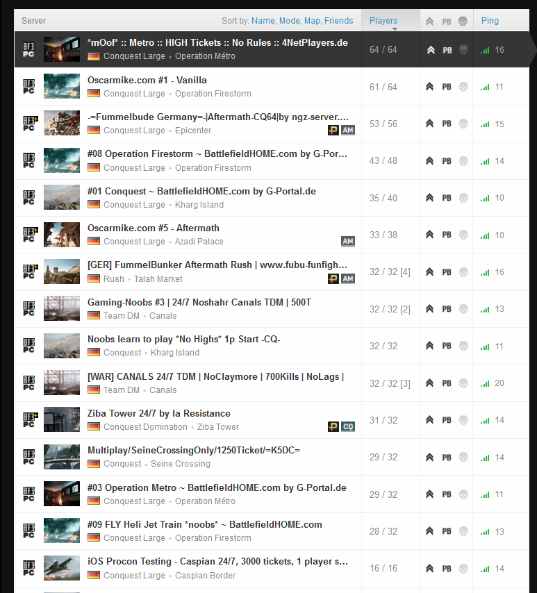 Das ist doch Quark. Ich habe dir mal einen Screenshot angehängt, wie es morgens um 8h mit der Spieleraktivität aussieht. Ich habe explizit nur nach Servern in Deutschland gesucht. Die Liste setzt sich entsprechend nach unten fort, wenn man noch andere europäische Länder dazunimmt. Da ist aus jedem Mappack etwas dabei (außer Aftermath, aber da habe ich auf Anhieb auch 3 volle Server gefunden).