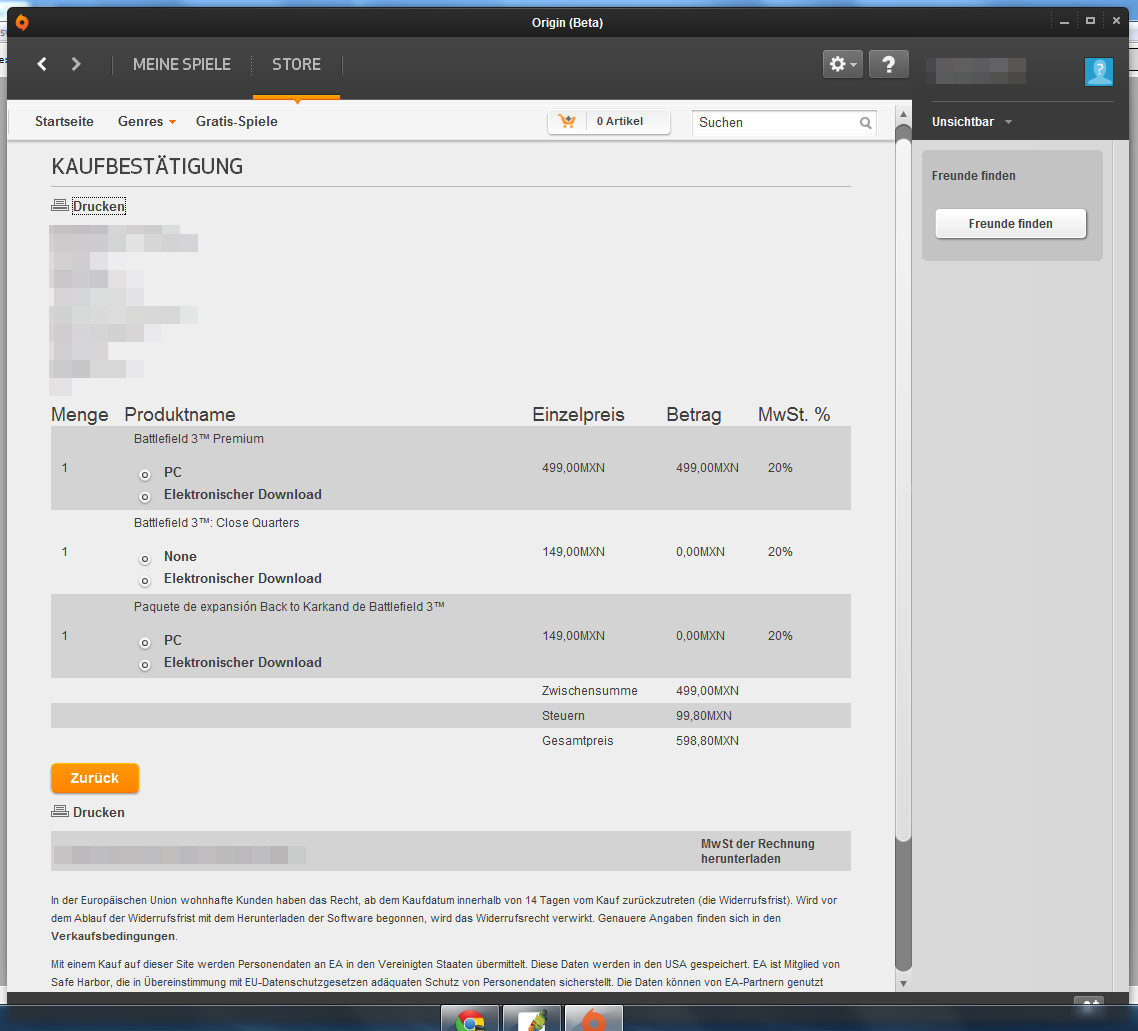 EDIT: der Kauf hat geklappt, aber mir ist ein Fehler unterlaufen. Ich habe beim Kauf eine andere Email-Adresse angegeben, als in meinem Origin-Konto hinterlegt ist. Ich habe 2 sehr ähnliche Adressen, die ins selbe Postfach laufen.