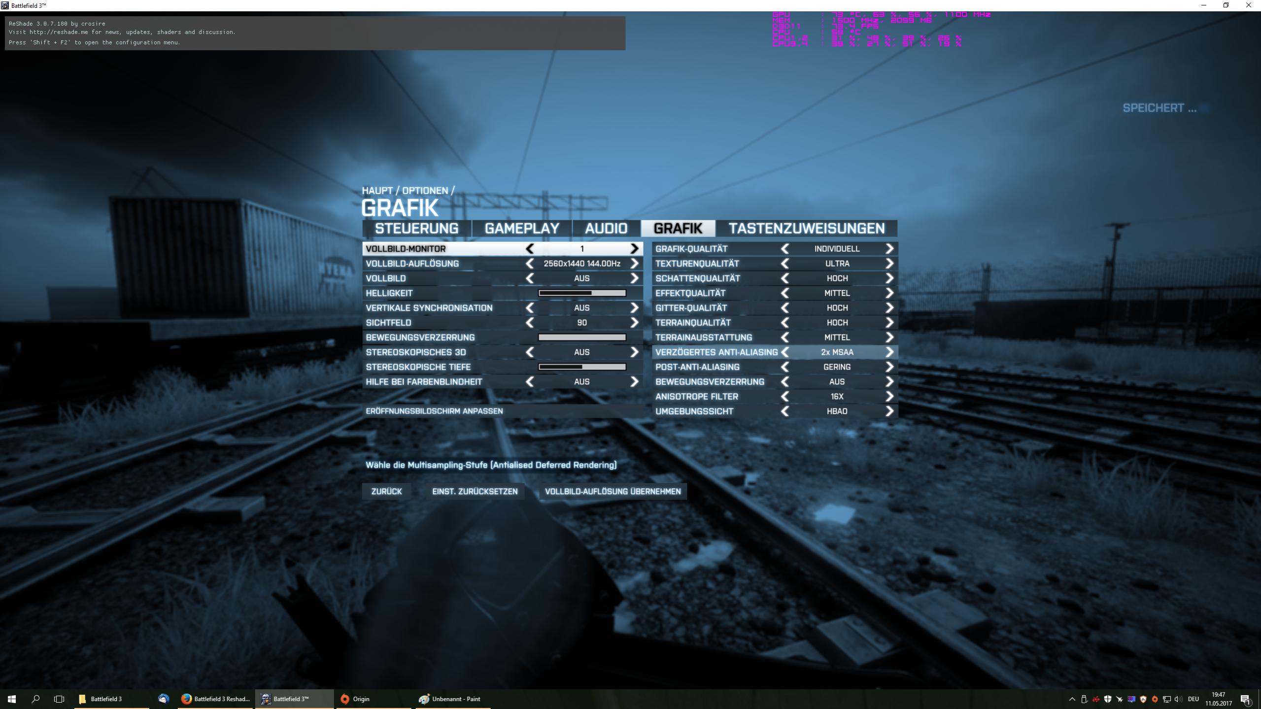 Reshade geht natürlich auch bei BF4 BF1 und allen anderen Spielen.