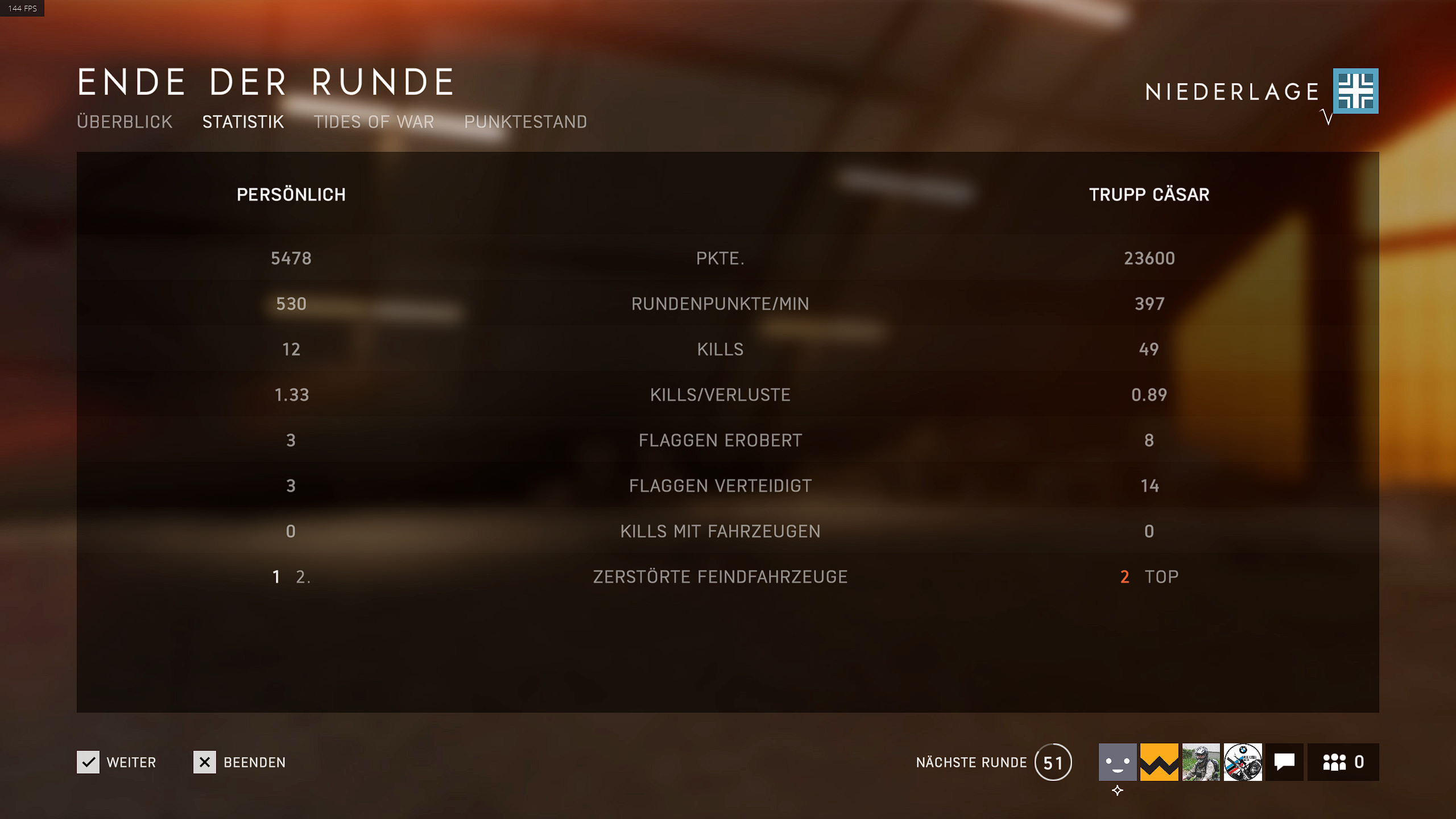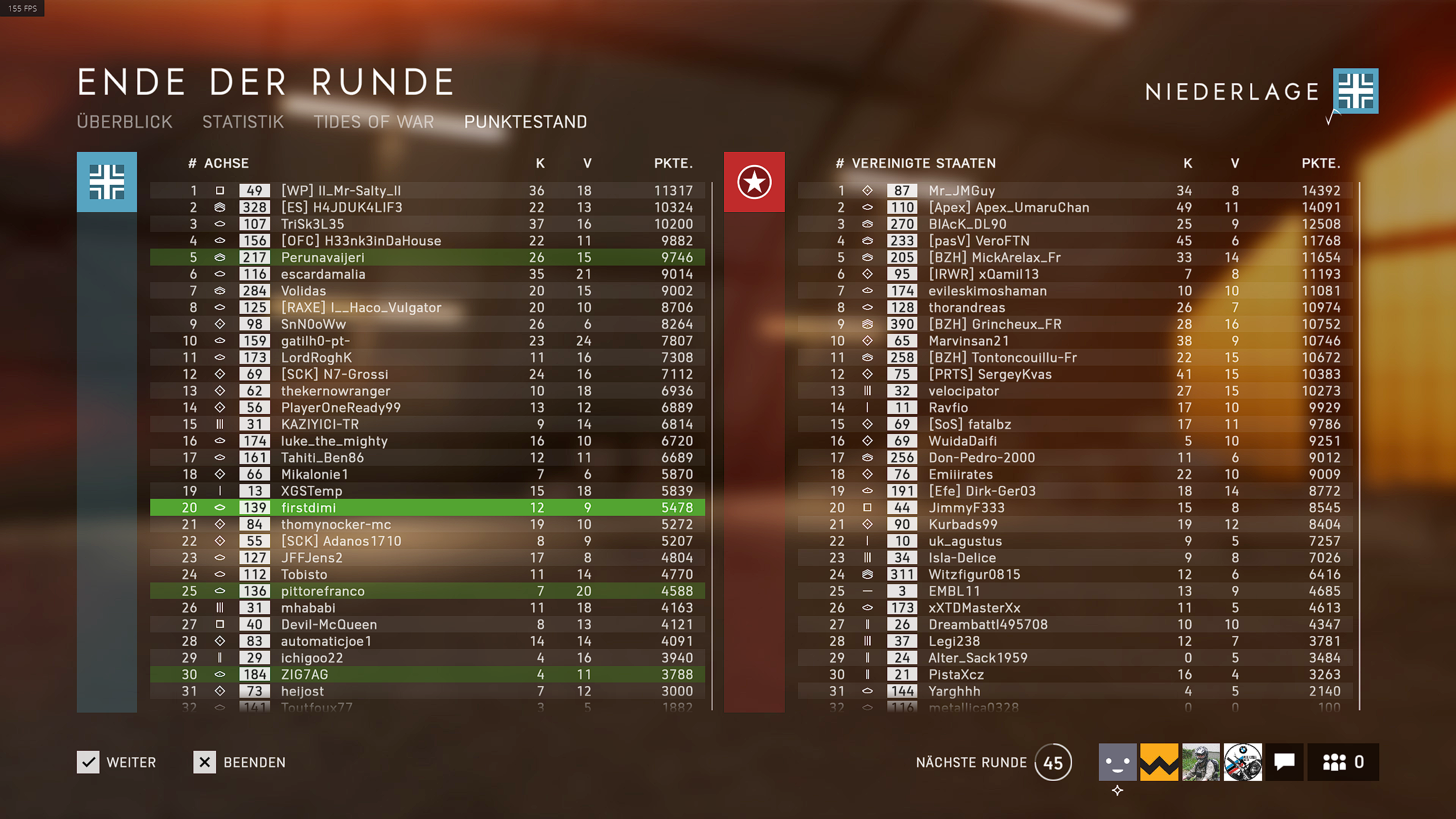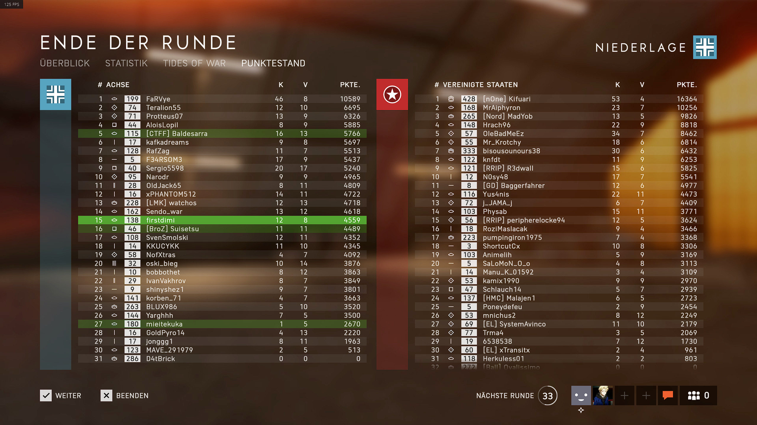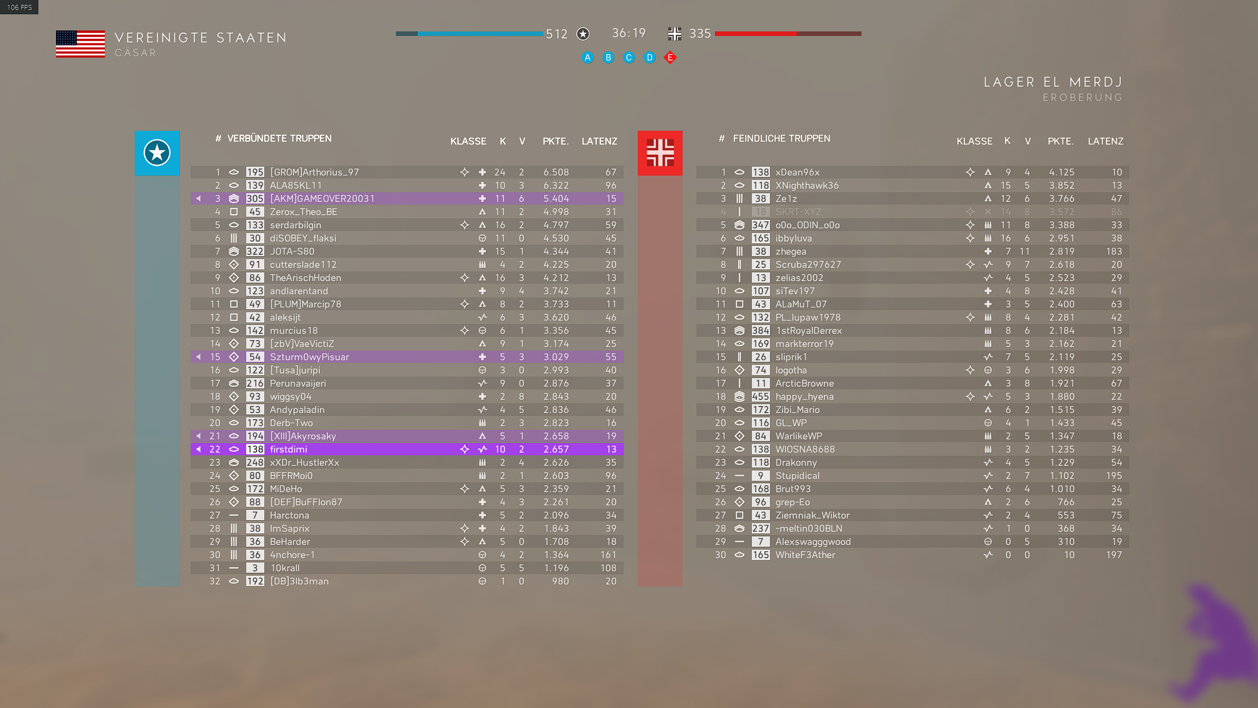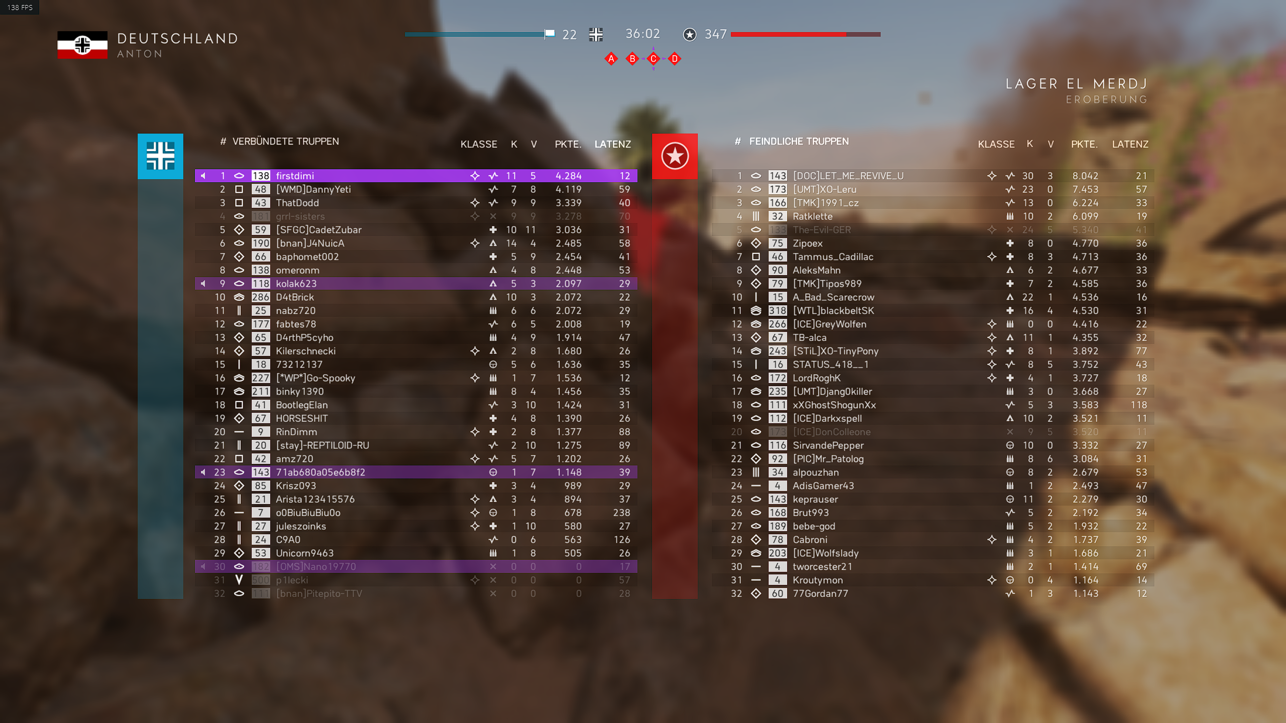Bin kein hervorragender Spieler, immerhin war ich schon Mal bei mit 64 Spieler voll-gelegten Hauskampf im Lager El Merdj erster.