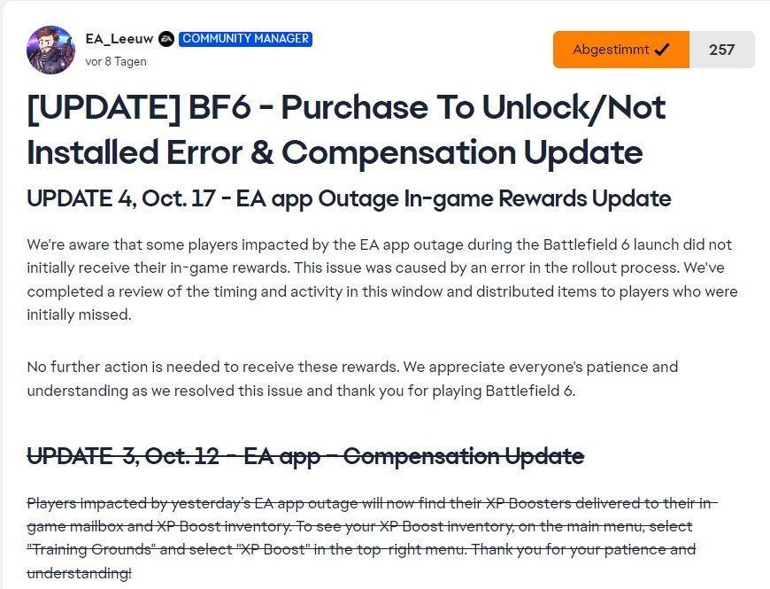 Ja, BF6 ist grundsätzlich ein gutes Spiel bzw. hat ne gute Basis aber am Ende ist es immer noch EA und EA ist nunmal ein Sauladen auch wenn sich die Battlefield Entwickler noch so sehr nach außen hin als Kumpels darstellen die nur das beste für die Spieler wollen. Das ist Bullshit. Allein durch die Änderung der Tickets in Conquest sieht man dass das maximaler Bullshit ist. Die Entwickler und EA scheren sich einen Dreck um die Spieler und was die wollen.