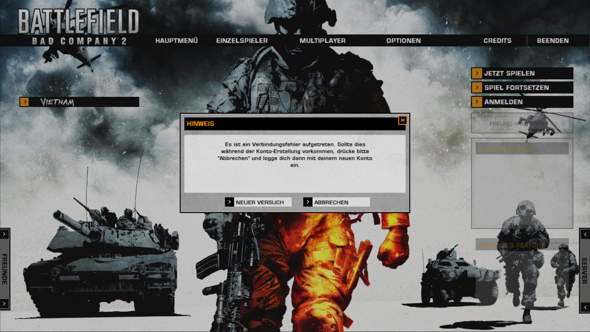Hier die Antwort: http://www.figh7club.com/bad-company-2/news-artikel,Backend-Neustart-naechste-Woche,49920,1.html