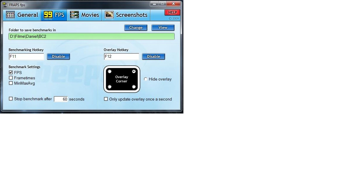 wenn du das schon öfters nutzen willst, kauf dir fraps, kostet gerade mal 30 dollar... falls du die gekaufte hast, lad dir mal die neue version runter von dem memberzugang...