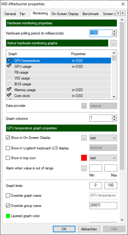 Mit Hilfe des MSI Afterburner Curve Editor habe ich das tatsächlich einfach durchzuführende OC ausgeführt und die Karte läuft jetzt mit dem BIOS 2 problemlos mit 2.025 MHz / 2.000 MHz (Memory Clock habe ich auch erhöht).