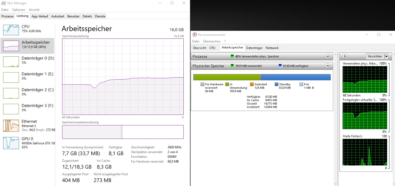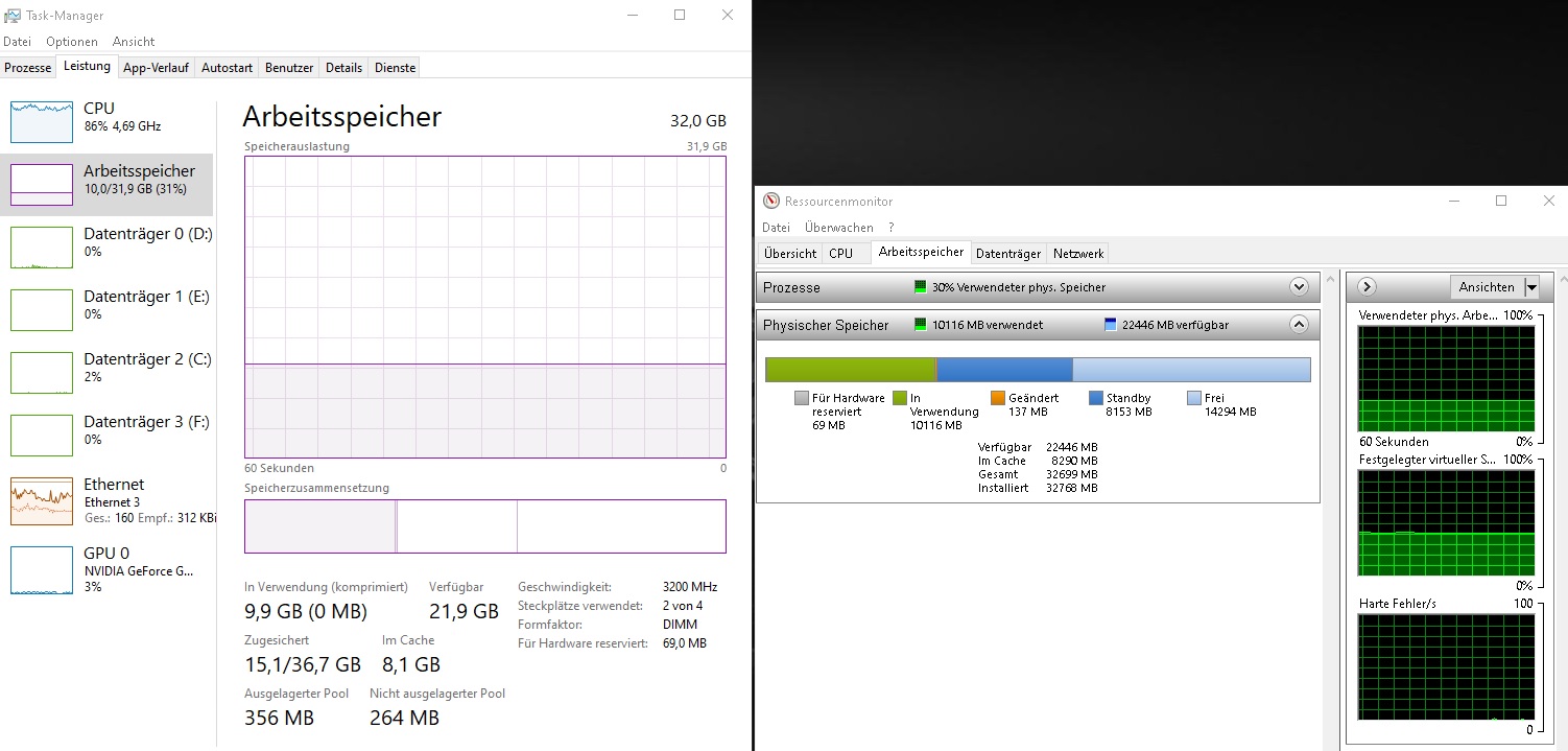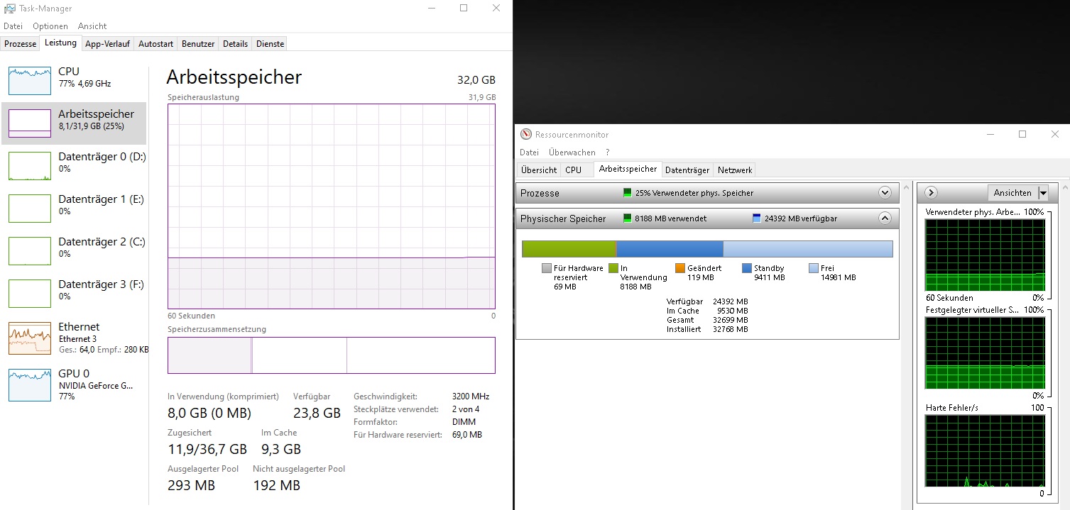 Bisher hat sich aber noch nichts am vorläufigen Fazit geändert: Win 10 und Nvidia Karten mit 8GB (und mehr) bilden die Schnittmenge der Problemrechner, bei denen die Bestückung jenseits von 16GB einen spürbaren Unterschied macht.