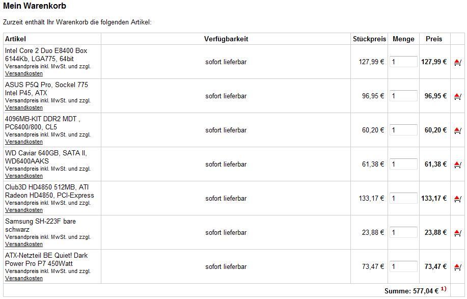 so richtig sicher bin ich erst bei netzteil und gehäuse, einem p35 oder p45 chipsatz und dass es ein schneller core2duo sein soll und mindestens 2 giga ram.