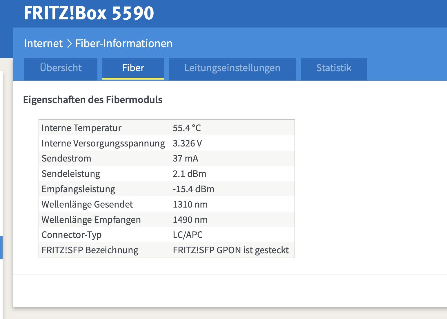 Auf die Art des Steck-Anschlusses bin ich auch hingewiesen worden. Im Nachhinein auch für mich logisch, da der FritzBox auch ein LC/APC auf LC/APC-Anschlusskabel beiliegt.