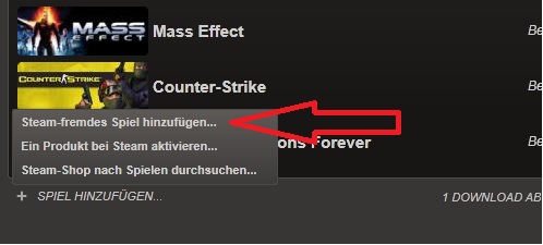 Dazu wählst du einfach "Steamfremdes Spiel hinzufügen" und wählst entweder aus der Liste oder durchsuchst deinen PC nach der Exe und du fügst das Spiel als Verknüpfung zu.