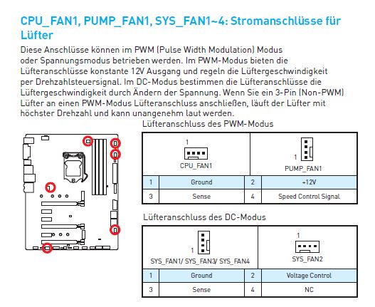 Das MB besitzt nur zwei PWM Lüfteranschlüsse (CPU_FAN1 & PUMP_FAN1)