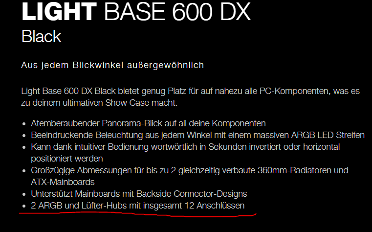 Auch wenn ich mir nun doch das FX geholt habe, ergab sich beim Zusammenbau des Rechners eine Erkenntnis: Auch die DX-Gehäuse müssen mit dem Hub daherkommen, denn sonst wäre eine Steuerung der Gehäusebeleuchtung gar nicht möglich. Von daher bin ich davon überzeugt, dass auch die DX-Gehäuse mit den beiden Hubs ausgeliefert werden.Blood011 schrieb:Sehr gut, hoffe das stimmt auch so und wurde nicht nur einfach kopiert^^