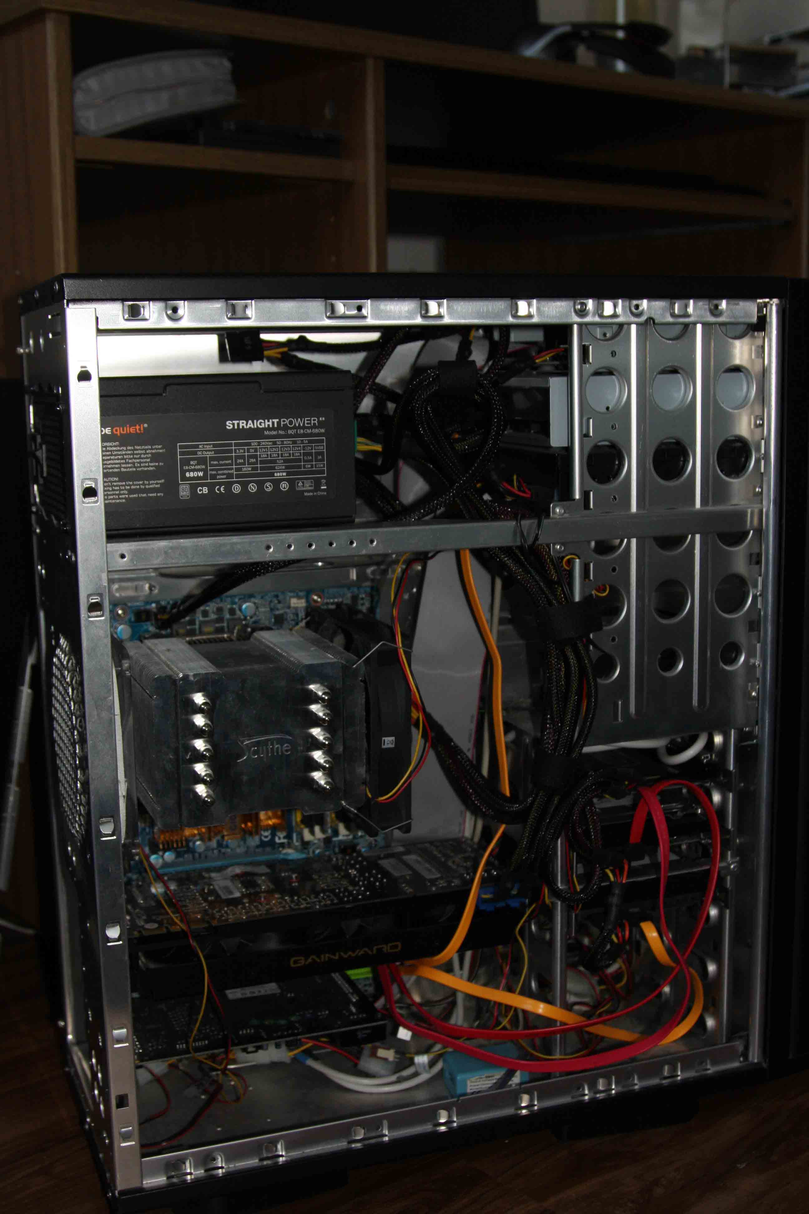 ich habe mir vor ca. einem halben Jahr eine Gainward 570 Phantom und das Be quiet Straight Power E8 680 CM gekauft. Ich hatte zuvor eine relativ leise 8800 GTS sowie das Be quiet Dark Power Pro mit 430 Watt, welches selbst unter Last eigentlich nie zu hören war.
