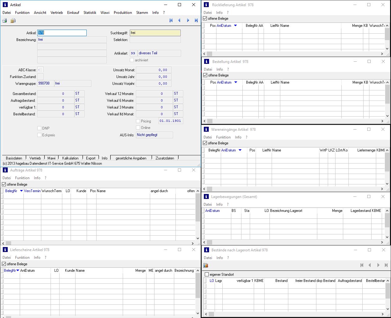 Das Warenwirtschaftssystem. Das ist ein System mit einzelnen Fenstern, die jeder anordnen kann und soll. Also sieht das so aus, wie auf dem Bild. Und beim Skalieren zerballert der die Anordnung leider. Dann hängen die Fenster übereinander.