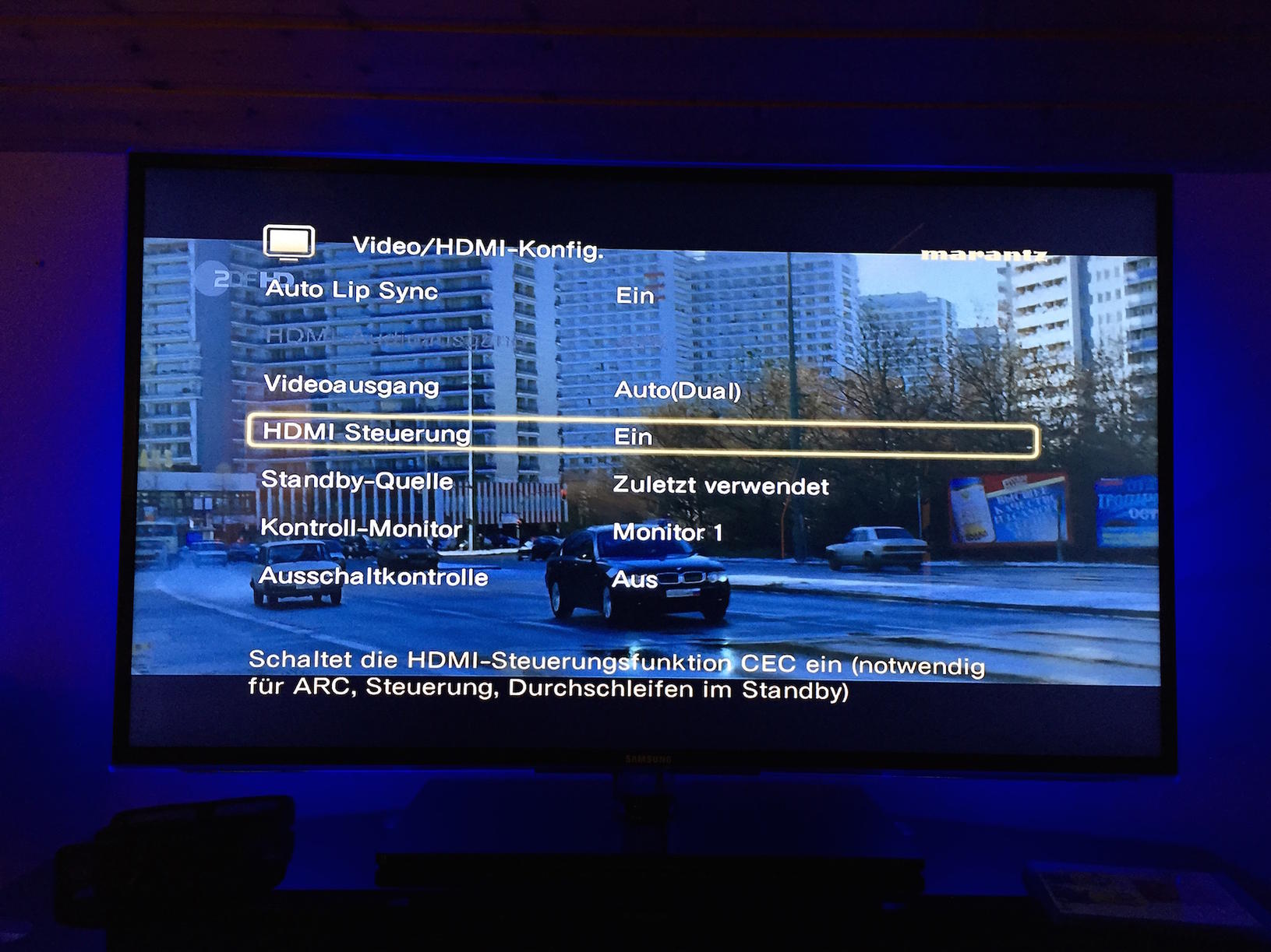 Problem ist, dass sich die schwarze Maskierung, also der Rand um die weiße Projektionsfläche nicht mit anpasst.