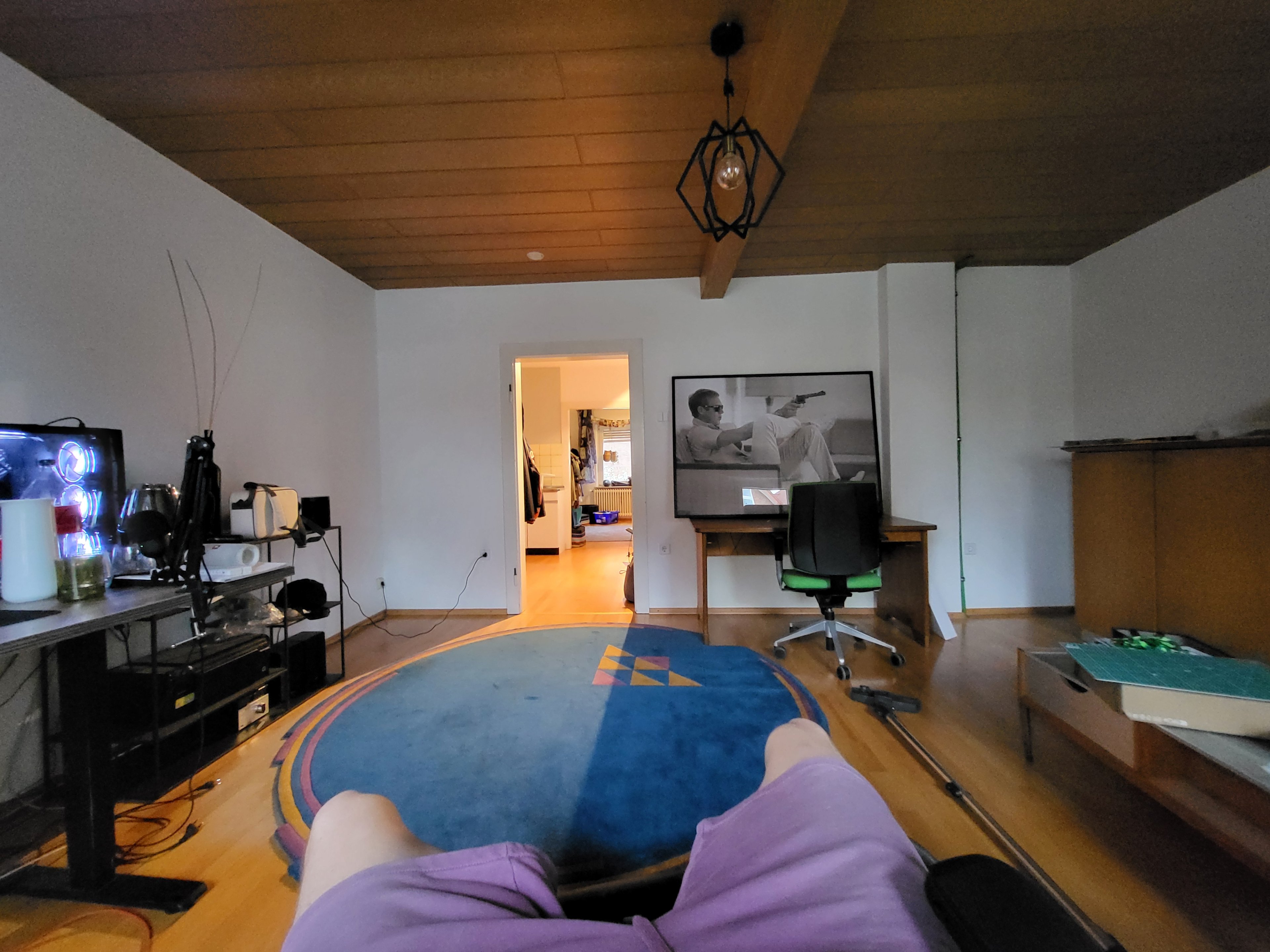 Zum Bild: Links an der Wand soll das Bild vom Beamer angeworfen werden, also auch die Soundbar stehen. Rechts soll anstelle des Schranks das Sofa stehen mit einem Beamer darüber.