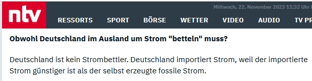 Das ist z.B. keine Meinung, sondern eine falsche Tatsachenbehauptung.Player0915 schrieb:Jetzt sind wir der Strombettler in Europa