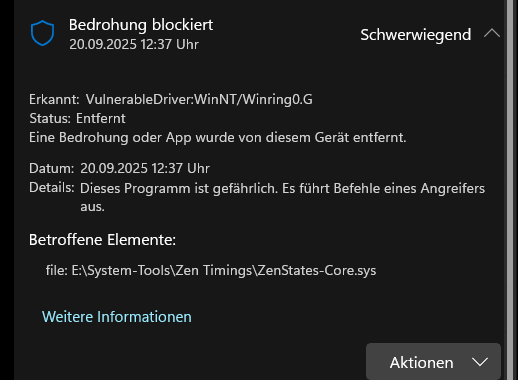 @FohlenBoy OpenHardwareMonitor ist tot, letzter Commit Dez 2020. Aktiv weiterentwickelt wird der Fork LibreHardwareMonitor, in den experimentellen nightly builds haben sie WinRing0 bereits durch PawnIO ersetzt, bis zu einem stabilen Release wird es wohl noch etwas dauern.